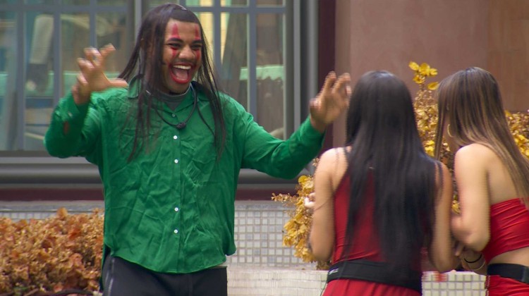 Após ser maquiado por Alane, Davi vai para a área externa do 24 e se esconde atrás da porta para esperar Isabelle e Beatriz voltarem das compras do mercado. O baiano ri sozinho e, assim que as sisters abrem a porta, ele dá um susto nela.